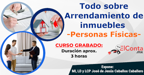 Expositor: José de Jesús Ceballos Caballero* Maestro en Impuestos, LD y LCP Curso emitido el: 23 de septiembre 2025 Duración aproximada: 3 horas Objetivo: Analizar y comprender el marco legal y fiscal aplicable al régimen de arrendamiento de personas físicas en México, con énfasis en las disposiciones de ISR, IVA