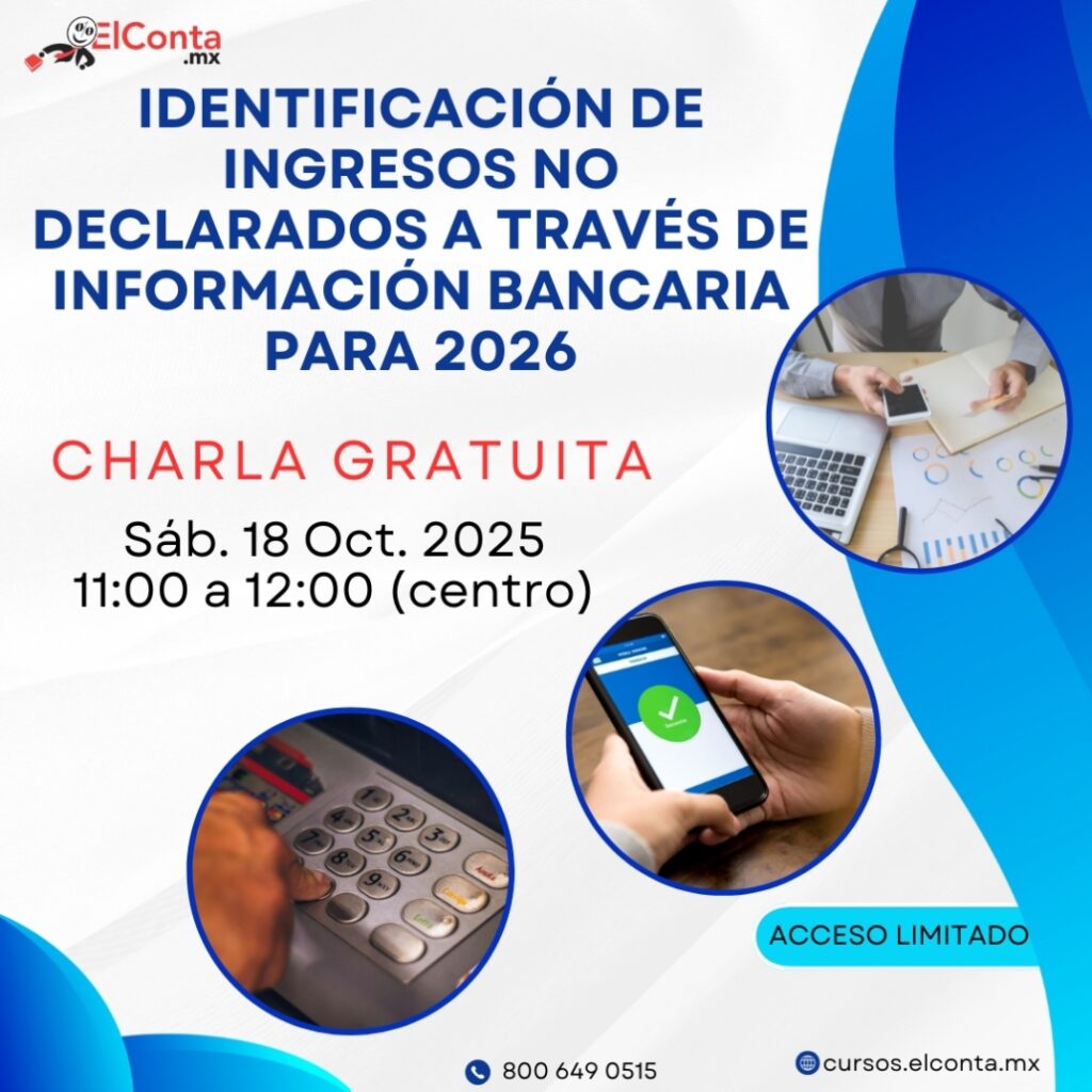 La entrada Charla GRATUITA!! Identificación de Ingresos no Declarados a través de Información Bancaria para 2026 – Sáb. 18 Oct. 11am se publicó primero en ElConta.MX Cursos en línea.