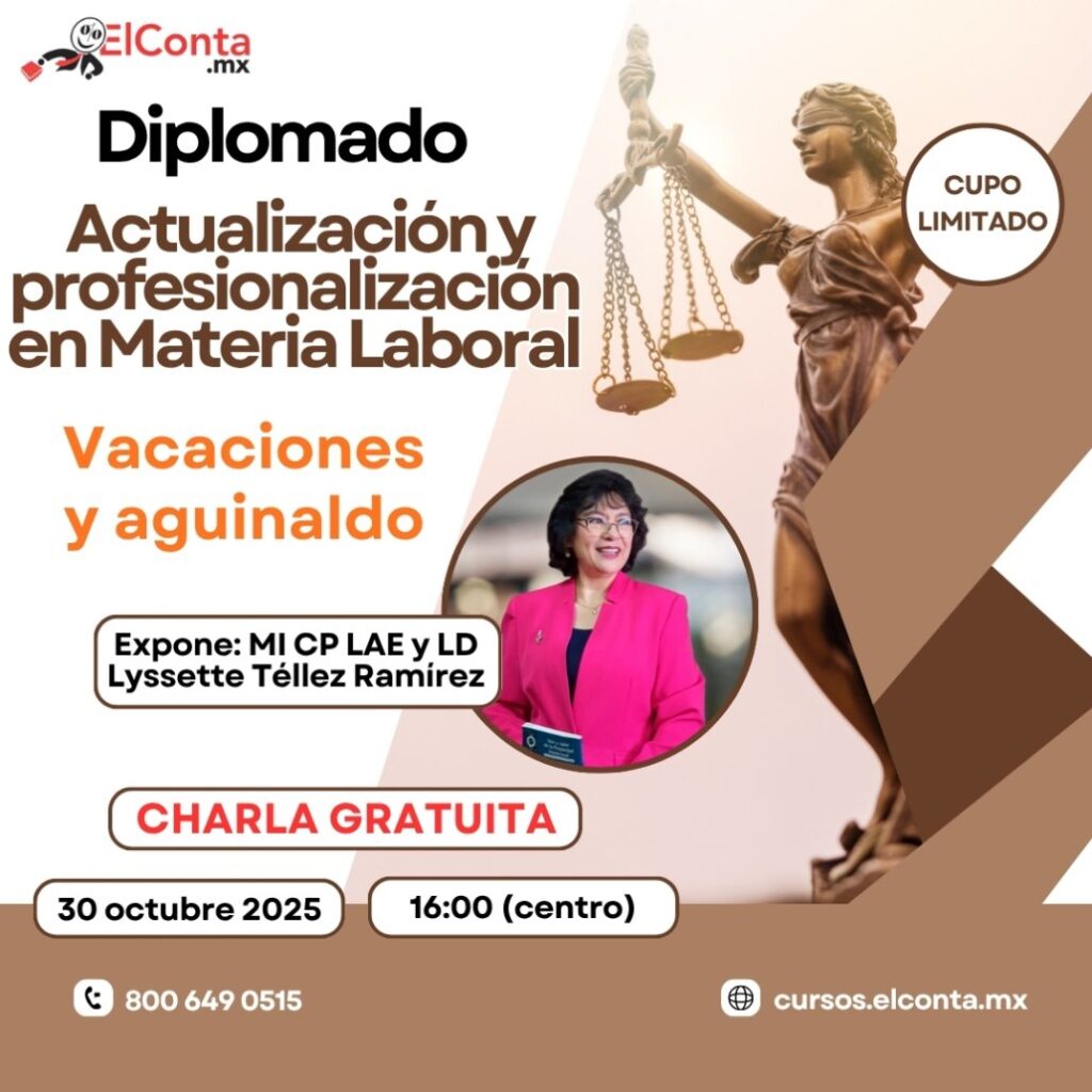 La entrada Charla GRATUITA!! Actualización y profesionalización en Materia Laboral – Vacaciones y aguinaldo. Jue. 30 Oct. 4 pm se publicó primero en ElConta.MX Cursos en línea.