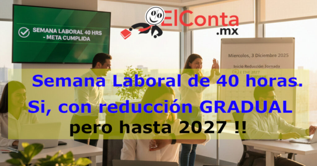 Ver completo en Por fin !! Semana Laboral de 40 horas. Si, con reducción GRADUAL pero hasta 2027 !! La reforma se implementará de forma gradual, con una reducción de dos horas anuales de la jornada ordinaria, hasta alcanzar las 40 horas en 2030. La entrada Por fin !! Semana Laboral de 40 horas. Si, con reducción GRADUAL pero hasta 2027 !! se publicó primero en ElConta.MX.
