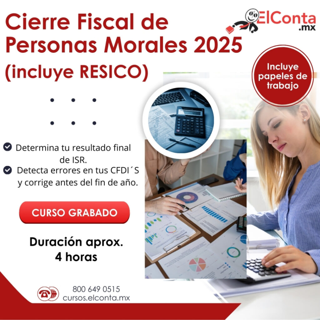 Determina tu resultado final de ISR y la renta gravable para la PTU, identifica errores y corrige tus CFDI´s antes de finalizar el año. La entrada Cierre fiscal de Personas Morales 2025 (incluye RESICO). Curso Grabado!! se publicó primero en ElConta.MX Cursos en línea.