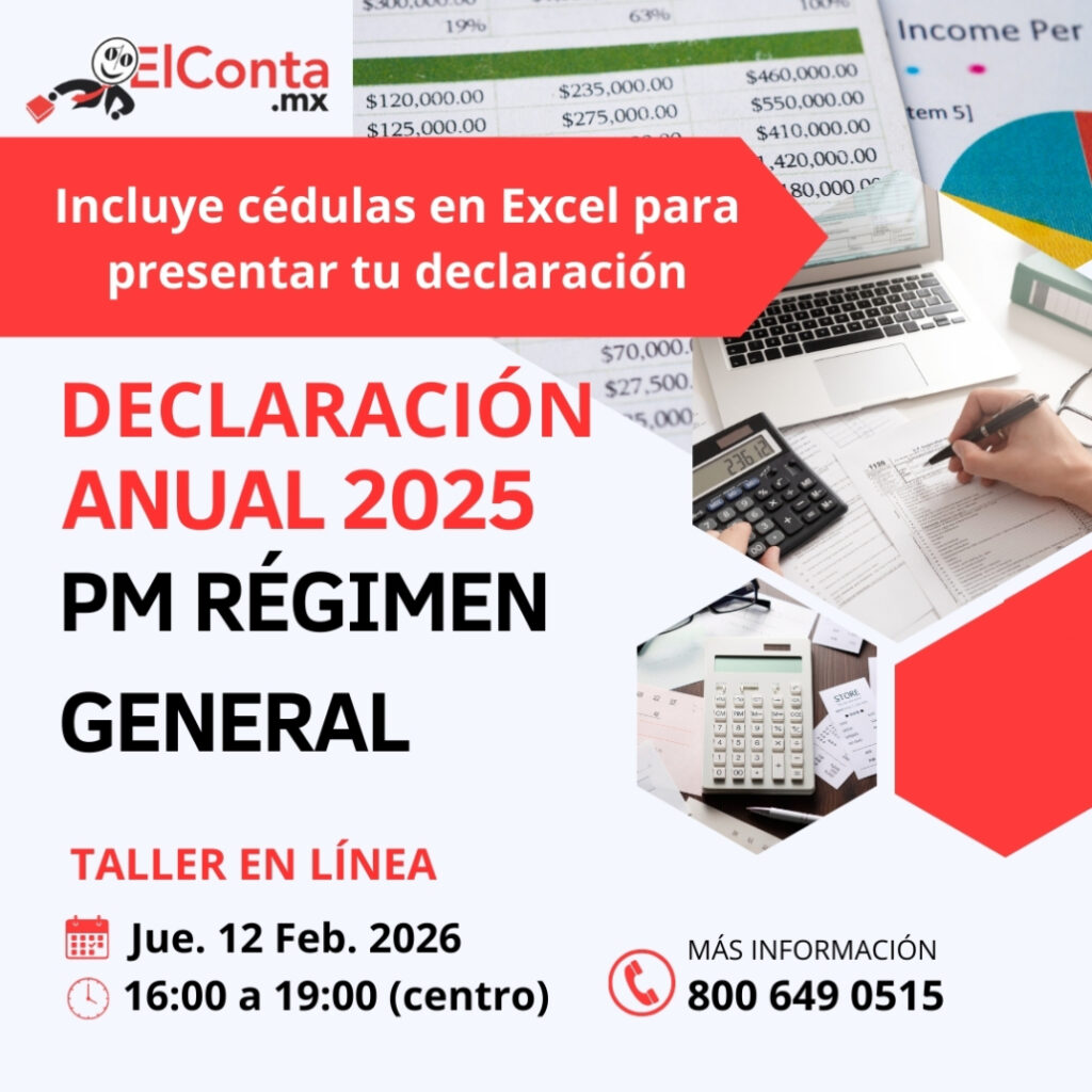 La entrada Jue. 12 Feb. TALLER Declaración Anual 2025 – PM Régimen General. Taller en línea 100% En VIVO!! se publicó primero en ElConta.MX Cursos