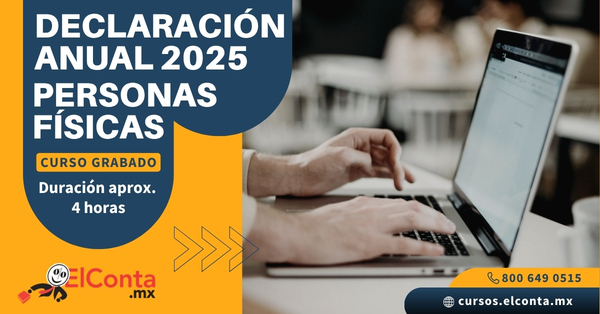 EXPOSITOR: L.C. Emmanuel Guerrero Romero * CURSO GRABADO: Emitido el: 26 marzo 2026 (Duración aprox. 4 horas) Objetivo: Conocer los principales aspectos a considerar para preparar la declaración del ejercicio de las personas físicas, ingresos y deducciones del ejercicio, adicionalmente las deducciones personales y conocer la información que se tiene que informar para evitar […]