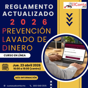 La entrada Jue. 23 Abril. Prevención de Lavado de Dinero 2026 Reglamento Actualizado – Curso en línea 100% En VIVO se publicó primero en ElConta.MX Cursos en línea.